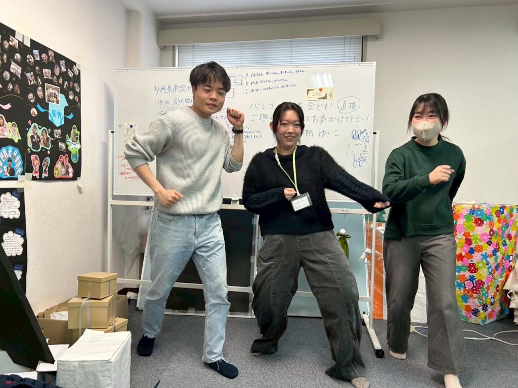 3人、3人、4人のグループに分かれて、各グルーブずつ前に出て、ULや有志の方が出すお題に合うポーズを3・2・1で全身で表し、揃ったら1ポイント獲得できるというルールで行いました!