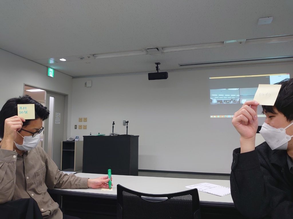 今回のアイスブレイクは、「秘密のアイデンティティ」をしました!各自が付箋に誰もが知っている有名人を書き、見えないように左隣の人に渡します。その後、順番にイエス/ノーの質問をして自分が持っている付箋に書かれた人物を当てるというものです!