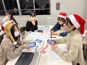 ポイントが最下位だったチームにはクリスマスコスプレしてもらいました!コスプレしてるのは誰か当ててみてください!