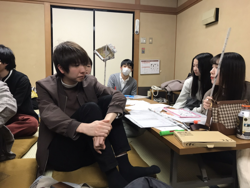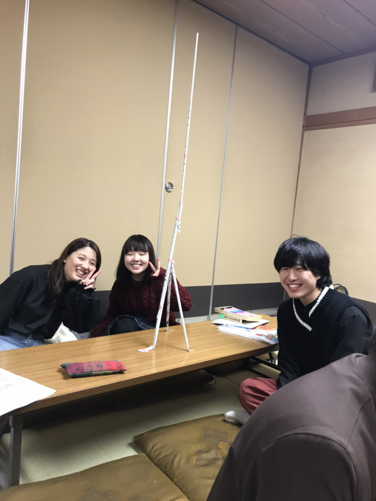 今回のアイスブレイクは「新聞紙タワー」をしました。「新聞紙タワー」とは読んで字のごとく、新聞紙を使って、どこのチームが一番高くタワーを築けるかを競うゲームです。結果は、な、な、な、なんと1m50㎝を超えたタワーを作ったチームがありました。スゴ━━━ヽ(*`・Д´・)ノ━━━イ!!!