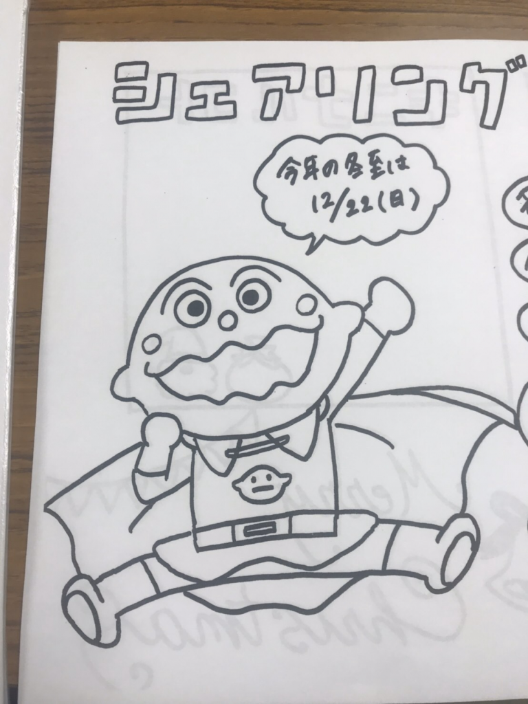 今回は4つの班に分かれてシェアリングをしました。各々の班で利用者さんの現状を報告し合っていました。そして、今月のシェアリングシートを飾ったのは、カレーパンマンでした。ヤバ(((●ノÅ`))カワイイ☆彡 その後、全体共有に移ります。