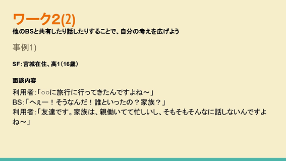 9日に参加したBSのアンケートを踏まえて、12日は内容を変えたところがありました?♀️9日には自分の担当している利用者さんだけで考えてもらいましたが、12日は自分の担当している利用者さんで考えられなさそうなときは、事例を利用してもらいました。その事例の一部を紹介します!