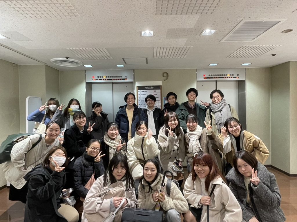 退室時間が迫りましたので、エレベーターの乗降ロビーでグループ写真を撮りました!📸