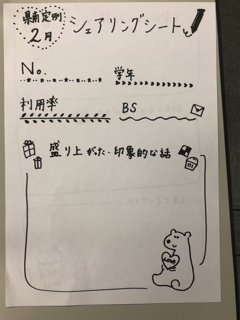 今月のシェアリングシートはかなこが書いてくれました。バレンタインな熊とやんちゃそうな鬼がいい感じですね。