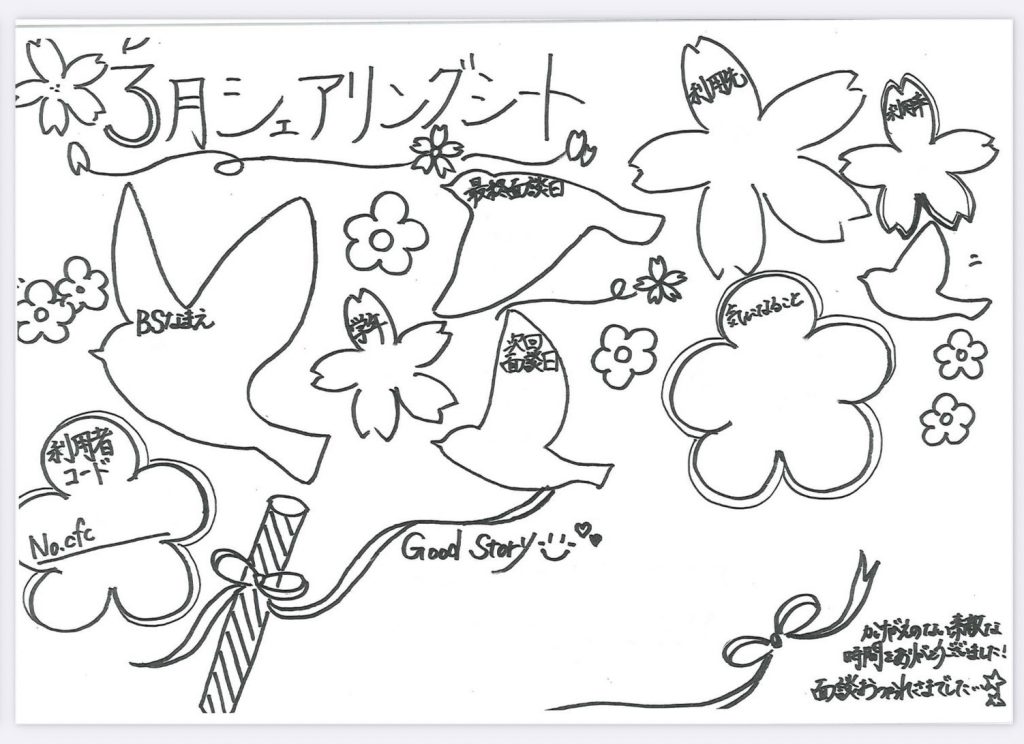 今月のシェアリングシートです!みみりんが描いてくれました!