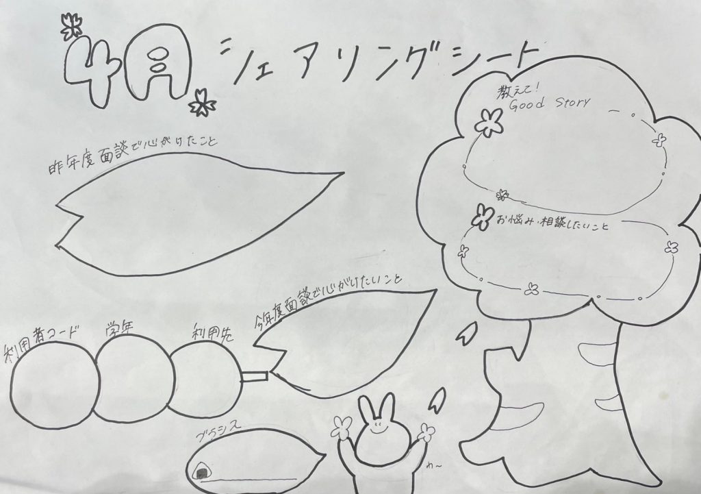 今回のシェアリングシートはおかだちゃんが描いてくれました!春らしくてかわいいですね🌸