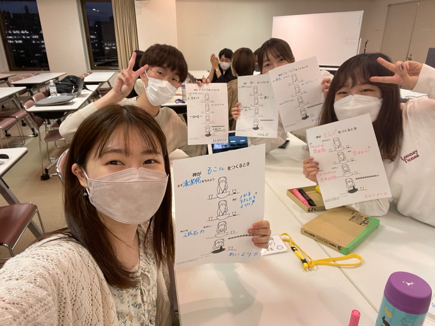 今回はアイブレで行った「神が○○をつくるとき」にちなんで、入れ物に何かを投入しているようなポーズで写真を撮りました!各々何を投入したのか気になるところです😂ちなみに私は、朝がとてつもなく苦手なので、「朝への強さ」を投入したつもり?です(笑)