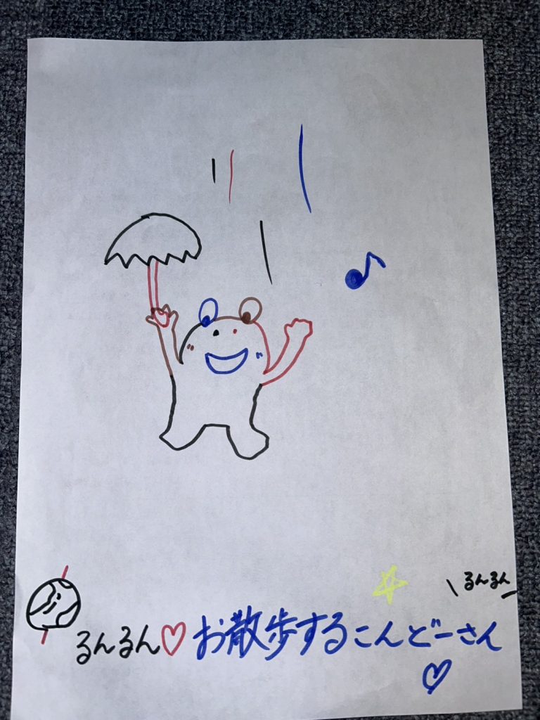- 紙を配って、お題を明かす(お題:傘をさすカエルさん🐸☔)