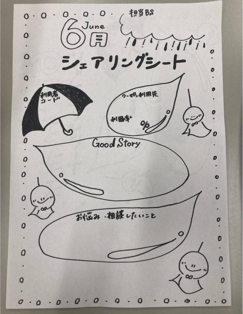 今月のシェアリングシートはでらこが書いてくれました~!6月のじめじめを吹き飛ばしてくれるようなてるてるぼうずが可愛いですよね!ULとしていつも頑張ってくれるでらちゃん、本当にありがとう!!