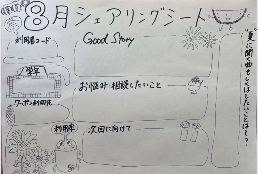 今回のシェアリングシートは10期のもえぴが書いてくれたようです!夏らしくてかわいい~🍉
