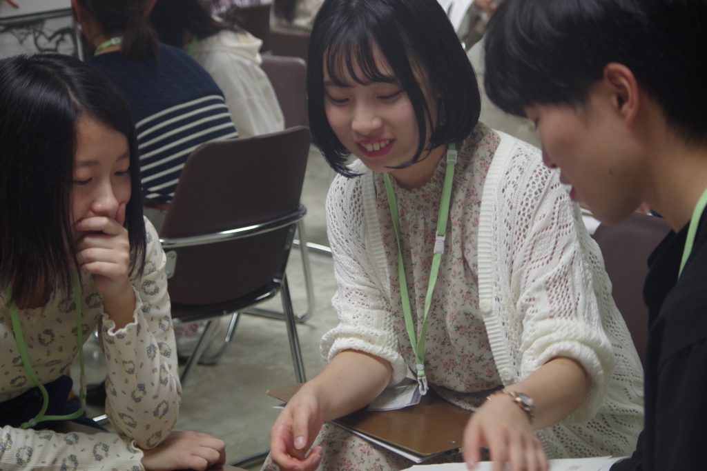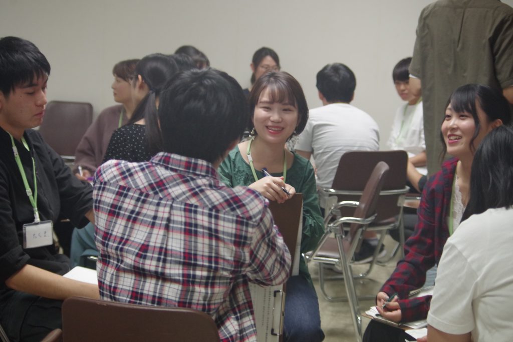 4つのテーマの中で一番気になった内容や、もっと話したいテーマに移動してもらい2人1組になって話したり、班のメンバーと意見交換してもらいました。テーマについて自分が感じたことや考えたこと、思ったことをただひたすら話し合ってもらいました!! 沢山の意見を聞くことで自分の考えと比較して、共感できるところやそうではないところもあったと思います。時間が足りないと思ってもらうぐらい話が弾んでいたみたいで、良かったです!!