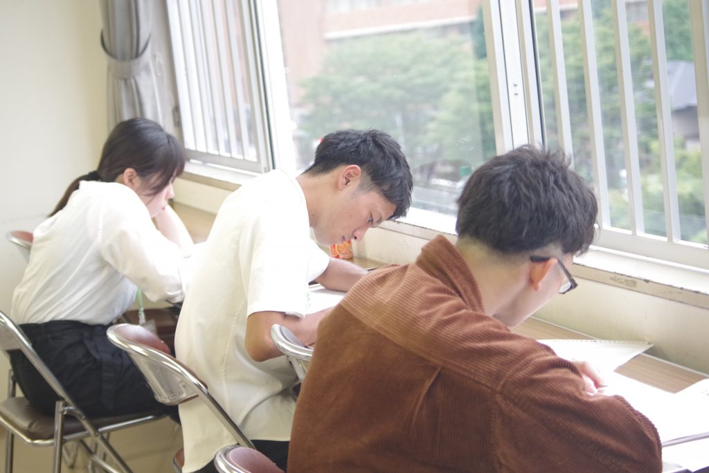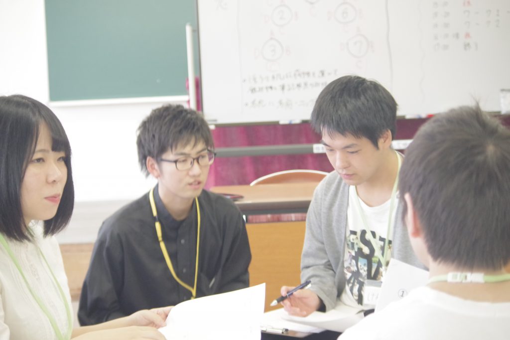 OB・OGの先輩方からいただいた意見を、自分の意見として班のみんなに発表してもらいました。自分の意見ではない分話しやすいという人もいれば、自分の意見を言えない分もどかしい人もいたと思います。簡単に答えが出ないものばかりなので、他者の意見を自分の物として主張することを通して、それぞれの視点を比較してもらいました。